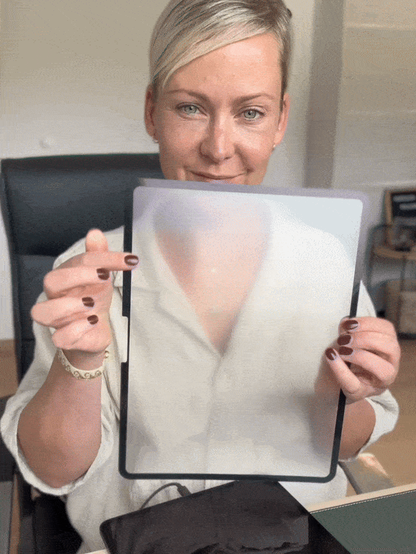 Deswegen hat PaperX Pro die NanoGrip-Haftbeschichtung, die ohne Kleber am iPad hält, sodass man PaperX Pro nur noch auflegen, anstreichen und genießen muss.