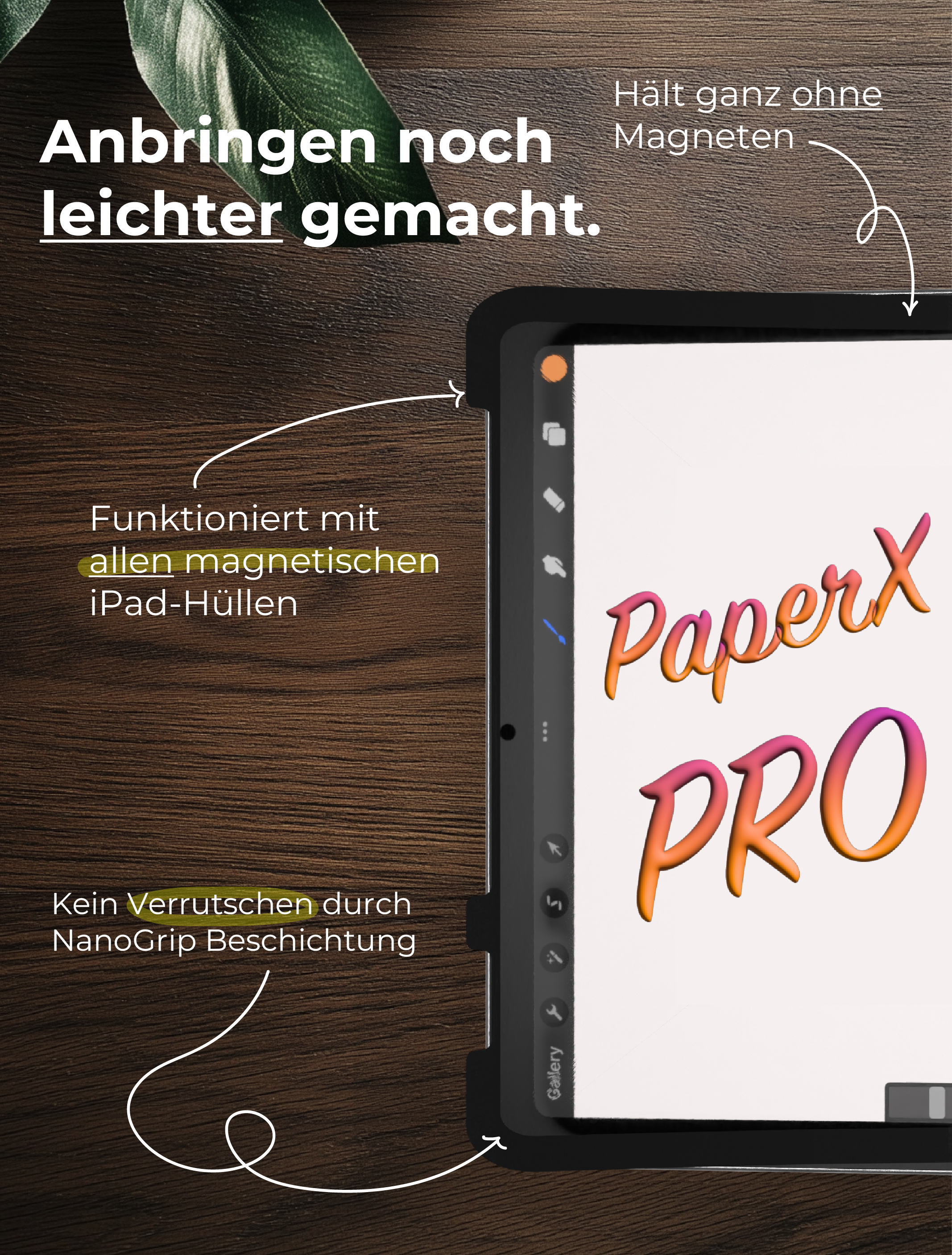 Ganz einfach in 4 Sekunden, ohne Luftblasen anbringen. Es verrutscht nicht trotzdem kannst du PaperX jederzeit und unendlich oft wieder abzunehmen.
